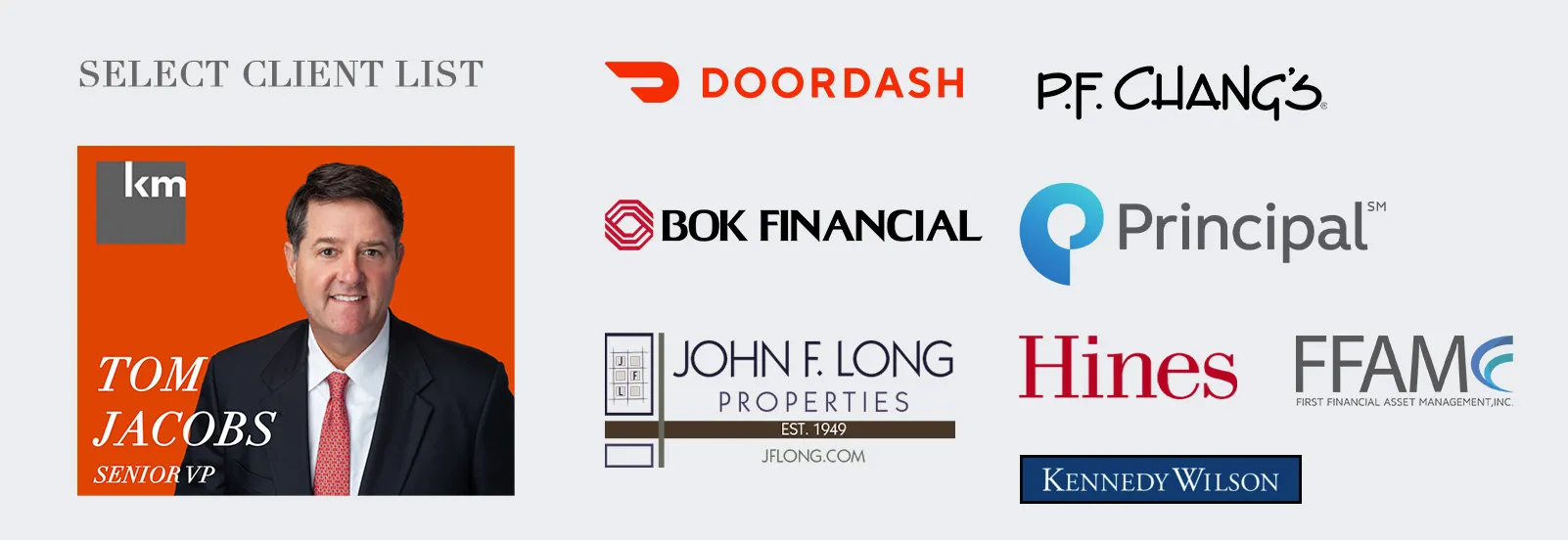 Kidder Mathews is a worldwide real estate services company with over 50,000 team members. As a member of a prolific company with all of their support and resources, Tom has been able to help negotiate over 40 transactions a year.